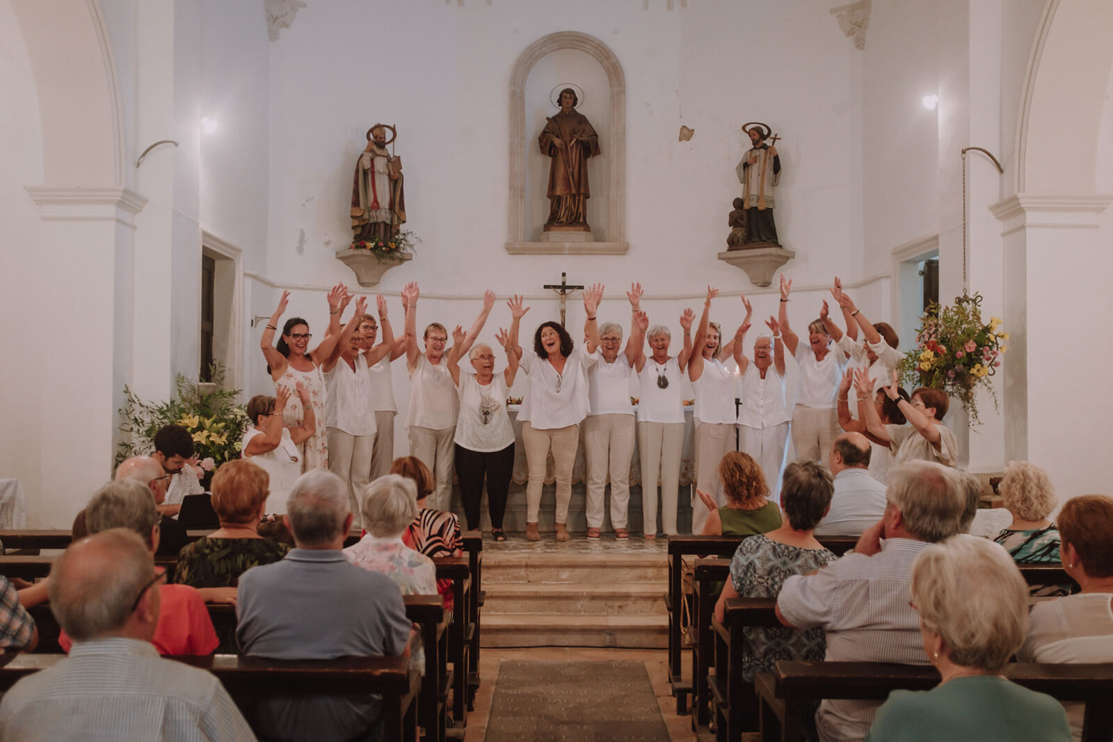 Com ja ve essent tradició, al migdia es va oferir l’Ofici solemne amb concert de la coral Les Estunes del Centre Cívic de Porqueres i, a continuació, es va realitzar la Benedicció de les collites des del pedró de Miànigues. Més tard, va arribar l’Audició de sardanes amb la Cobla Bisbal Jove i vermut per a tothom.